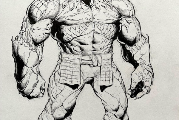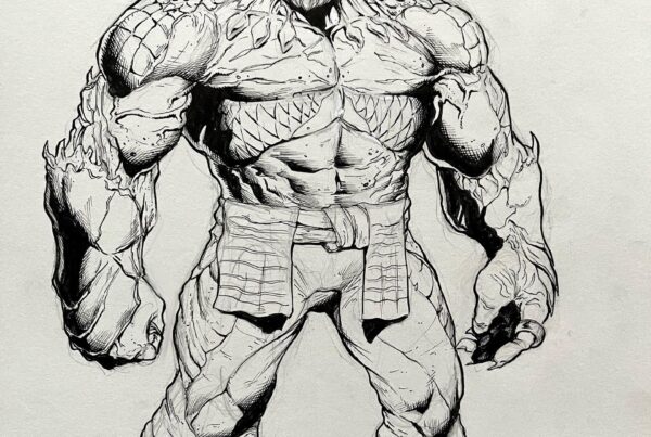 This is my concept image for Kovran from The Judo Chop. He was a difficult one, this is a combination of around four different concept sketches that I stitched together in photoshop. He has no hips I know – I’m not a professional concept artist – that’s why I pay talented people to recreate them all.